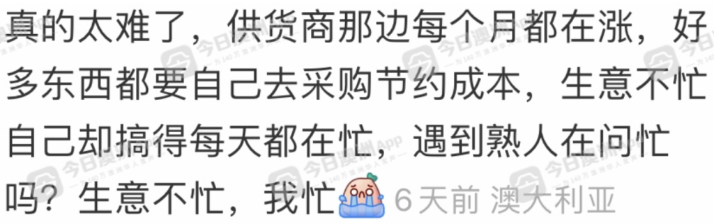 还有小生意经营者吐槽:“供货商那边每个月都在涨,好多东西要自己采购节约成本。”