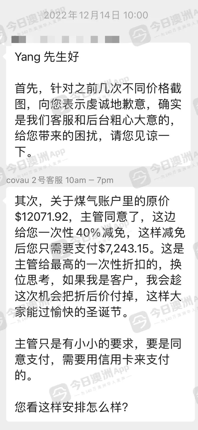 尽管对此结果不满意,为避免影响征信,他只得再度与能源公司协商,最终获得减免20%,实际支付金额仍高达$9657.53澳元。