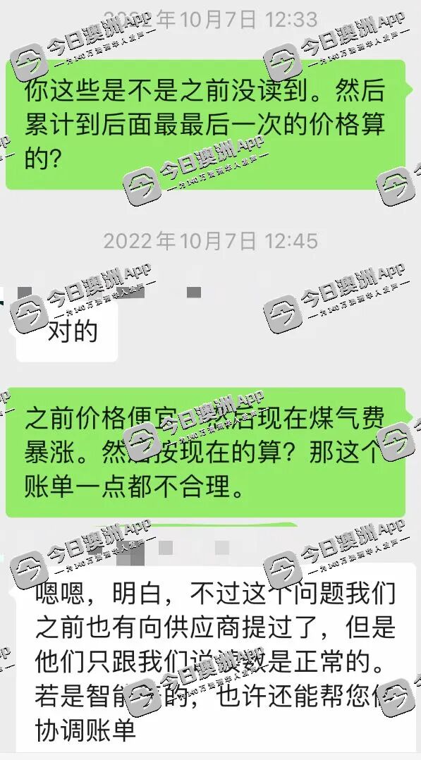 他告诉今日澳洲App记者,去年9月,他收到前一季度的煤气费账单,金额高达近$1.5万澳元。即便后续扣除能源公司25%的常规折扣后为$1.2万,这远超他早先约$3000元的常规金额。