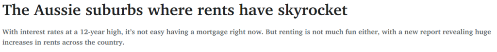 《每日电讯报》6月9日报道称,随着利率处于近12年来的最高水平,大批澳洲借贷者正处于困境之中。但与此同时,房屋租金也在不断上涨,租客的日子也不好过。