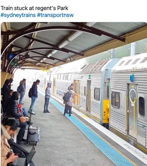 据《每日电讯报》报道,乘客报告称,他们在城市各个车站的火车上滞留了数分钟,直到8点后才恢复正常。7点45分,一名悉尼通勤族发推文抱怨,“悉尼的火车实在太糟糕了。”