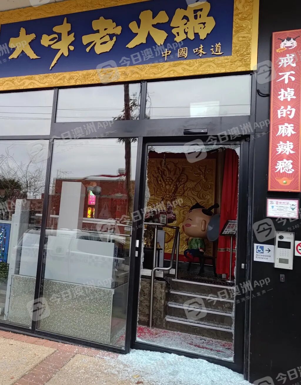 现场玻璃散落一地(图片来源:大味火锅小红书)