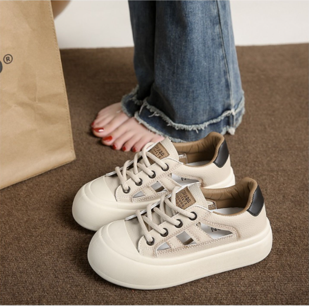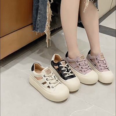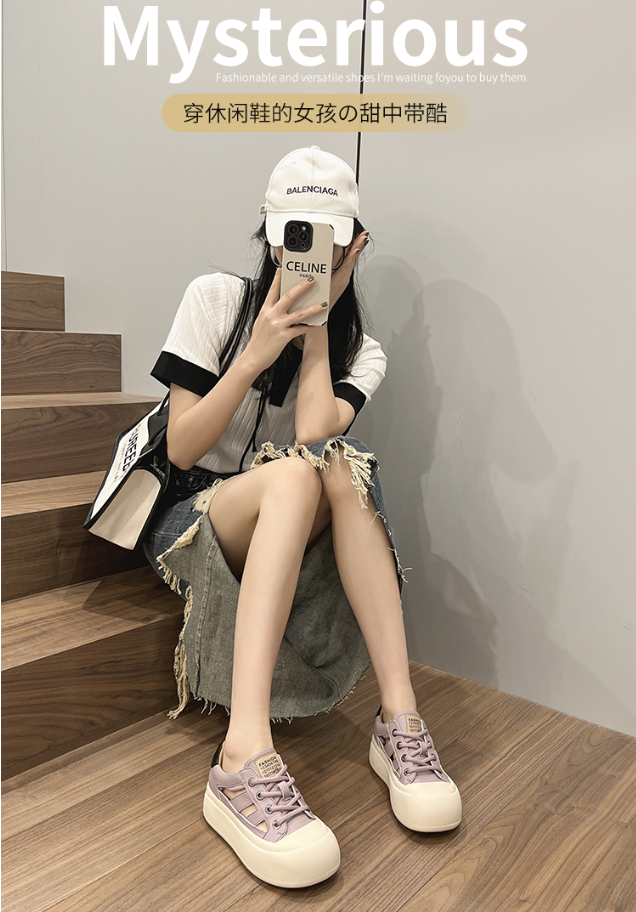 复古的鞋型设计,搭配不俗的撞色,外加双侧镂空点缀,不仅让鞋子的整体看起来更活泼元气,而且相比起中规中矩的小白鞋、帆布鞋,它自成一派的设计也更有辨识度,完~全不用担心会撞款,小众又耐看,走在街上真的回头率满满~圆润的饼干型鞋头设计,看上去又萌又酷,但上脚却一点都不显脚大,反而衬得脚更小巧。而且包容度也很强,无论你是埃及脚、罗马脚,就是大脚马皇后来了,这双鞋也能轻松容纳,一点不挑脚!更可人的是它的厚底设计,简直就是像我这样的哈比人的救星好吗!不要小看这4cm,编辑小姐姐155cm的身高,秒变160cm受欢迎的黄金身高,腿长了,看着人都显瘦了呢~不喜欢穿高跟鞋,又想用点“小心机”增高的姐妹,这双鞋再适合不过了。有它轻松穿出大长腿不是梦。更重要的是它的价格实在是太优惠了