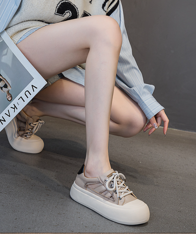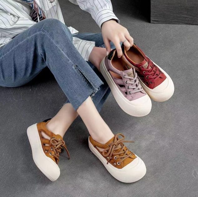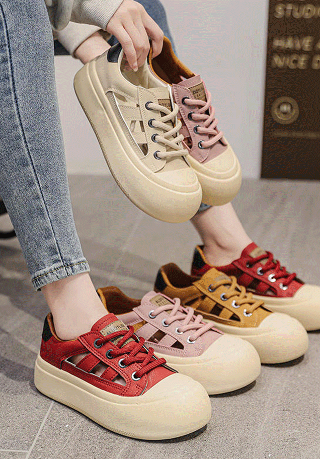 除此之外这双饼干鞋还有个特别戳我的点,就是真的太!百!搭!和长裤/短裤搭在一起,复古的调调就来了,而且就是现在z流行的那种“不费力”穿搭,街头感教科书!搭配裙子也很美,尤其是休闲范十足的牛仔裙,加上又萌又酷饼干鞋,真的很养眼,分分钟赚足回头率~足足4款颜色,都是今年热卖的色,忍不住想把每款颜色都撸回家!其中人气巨佳就是粉色,淡淡的很温柔,但又不失存在感,很是吸人眼球,走在路上都让人想多看两眼;还有明媚又亮眼的酒红色和棕色,做得真是很妙,可甜可酷,男女通吃,闭眼入的潜力股!如果实在纠结,不知道买啥色,米色永远是z安全的,也是当之无愧的「百 搭 之 王」