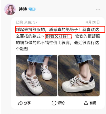上脚第一感受,就是软!不是像海绵那种无力的软,而是带有支撑力回弹力的软,那天我穿着它,跟闺蜜逛了一天的街都不带累的,舒适又好走,闺蜜见了也忍不住要种草立即抢购