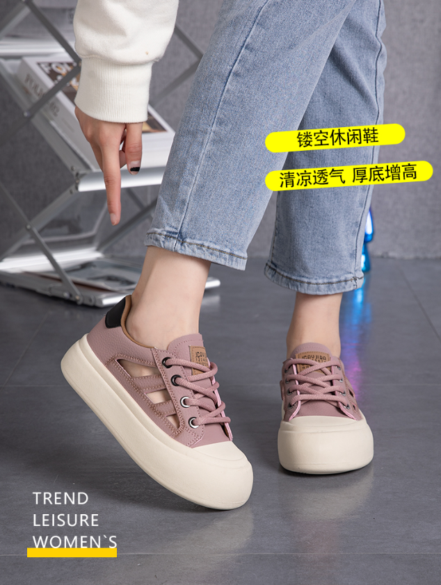 透气就更不用说了,双侧的镂空网格设计就像鞋里装了个小空调般,湿气、热气根本藏不住,仿佛会呼吸般,哪怕30-40度的高温下穿着也不闷不热别提多舒服而且鞋底是橡胶大底,外加立体防滑花纹,大大增加了鞋底和地面的摩擦力,让你走起路来感觉更舒适稳固!“鞋子太好了,上脚很舒服透气,增高又显瘦,真的太喜欢了!”