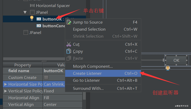 当然我们也可以其它任何控件去创建不同的事件监听器。这里可以通过界面操作创建很多种监听器,只要你需要,就可以使用。
