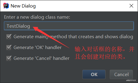 其实,刚才创建的这个对话框里的两个按钮都是默认已经创建好了点击事件的。