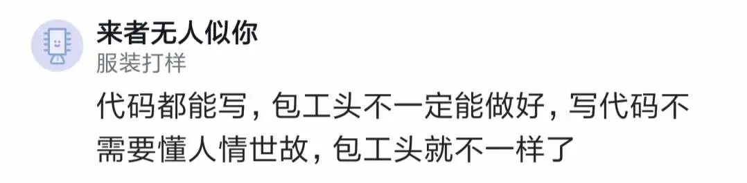 有人说,代码都能写,但包工头不一定都能做好,写代码不需要懂人情世故,包工头就不一样了。