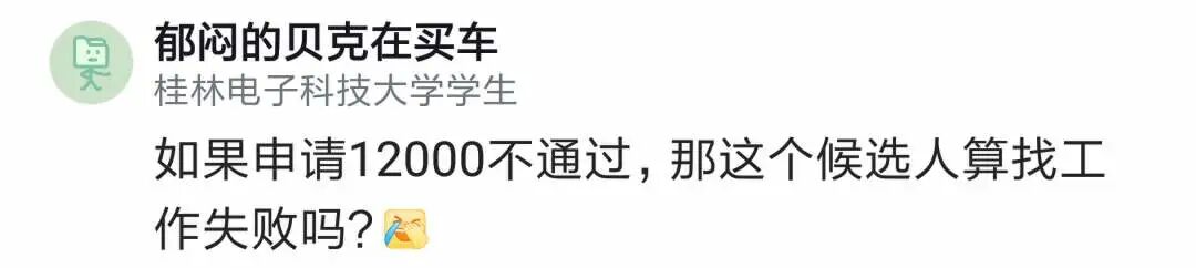 也有人问,如果申请一万二不通过,导致offer没了,那这个候选人算找工作失败吗?