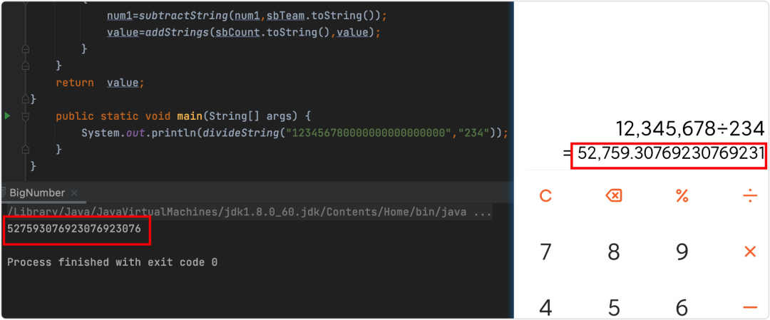 这个数字一般用字符串、链表等形式表示、返回,大数运算的核心就是:模拟,模拟我们日常用纸笔算数字的加减乘除流程,然后再根据计算机、编程语言等特性适当存储计算即可,不过,大数除法运算稍微特殊一点,和我们直接模拟的思维方式稍有不同,它就是转换了一下成特殊的加减法运算,后面会细谈。