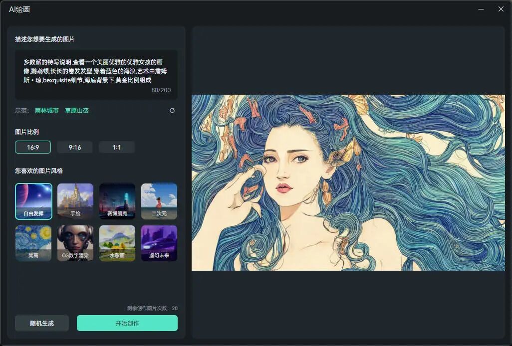 内嵌AI绘画,只要输入你想要的文字,就可以生成可商用素材,而且素材直接下载拖拽就能用。