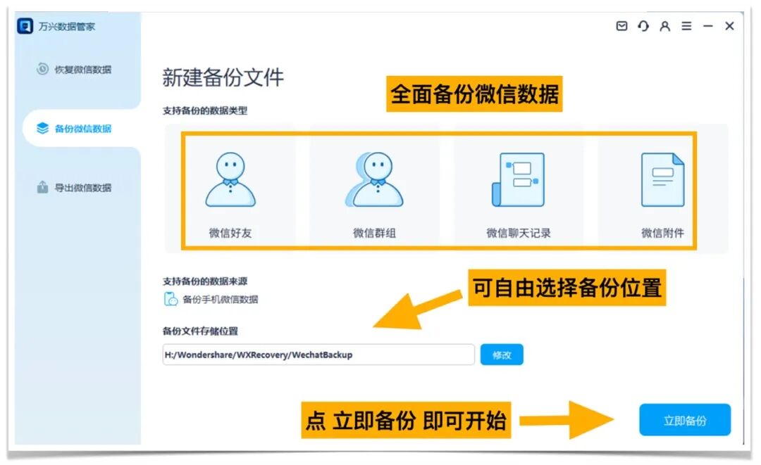 直到我用了这款软件,它支持手机上的所有微信数据备份,不论是工作文件、恋爱细节、孩子照片还是客户聊天记录都可以一键备份到电脑上。