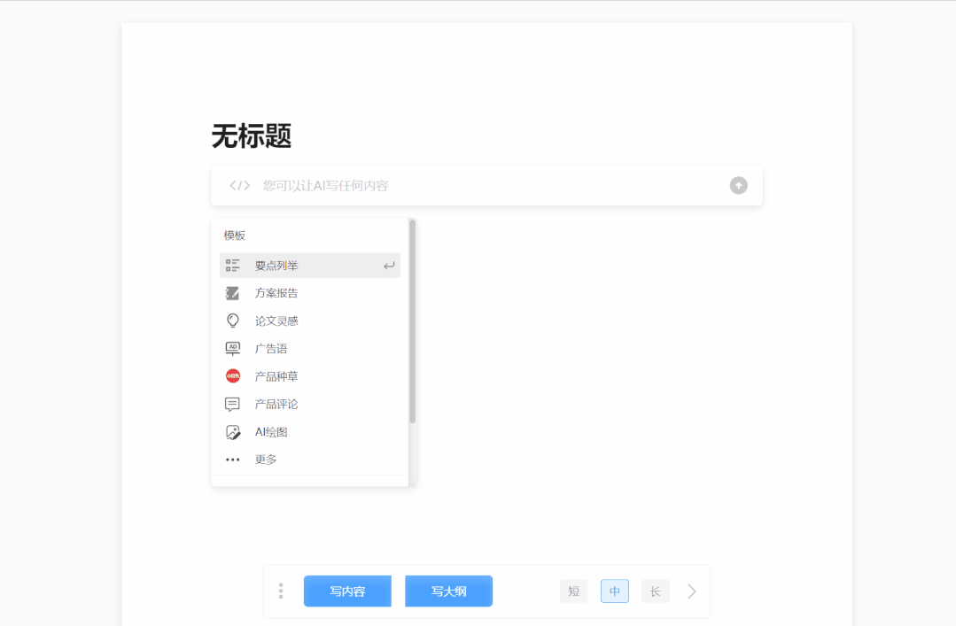 (1)在每个新建文档下面都有一个“写内容”和“写大纲”的按钮。这是我认为的一个比较方便的功能。