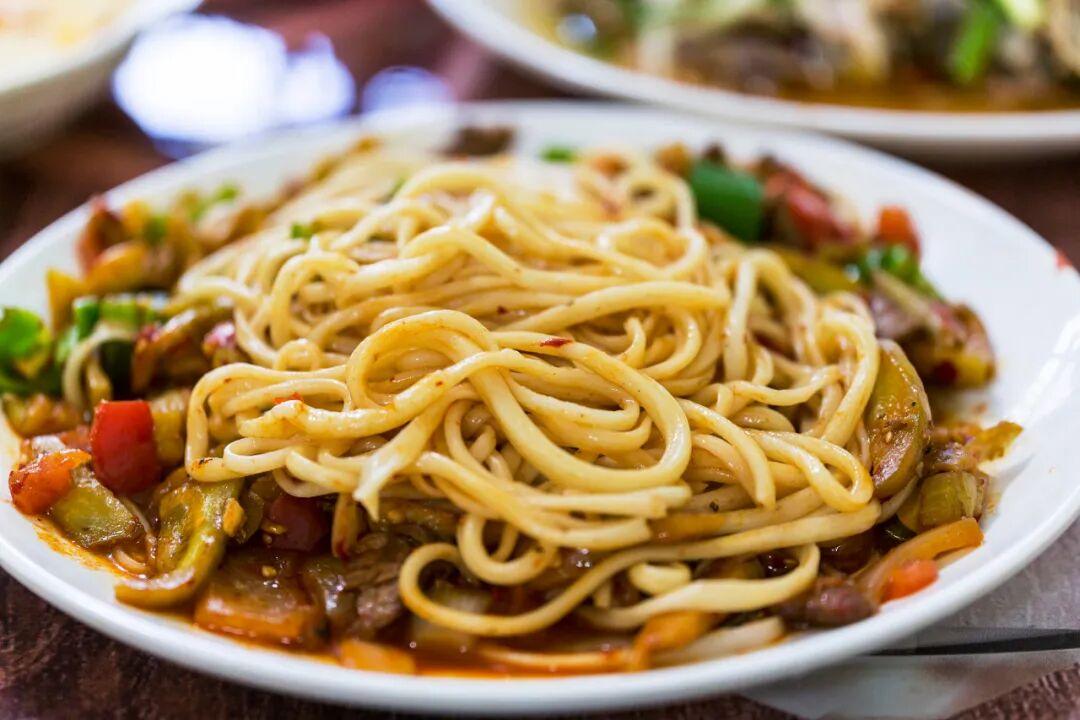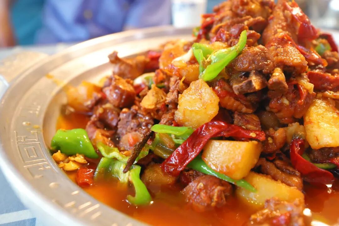 记忆里的新疆味道就是大盘鸡的味道,软烂的鸡肉、沙面的土豆、灵魂在最后的面,简直太好吃了。