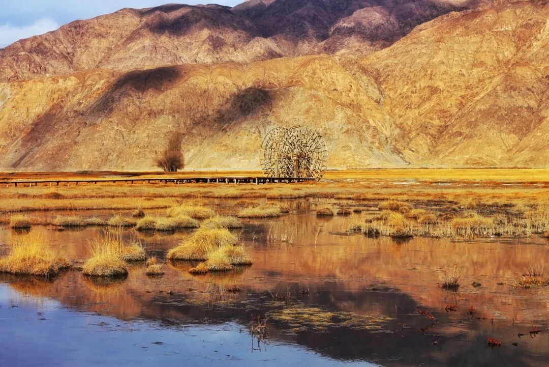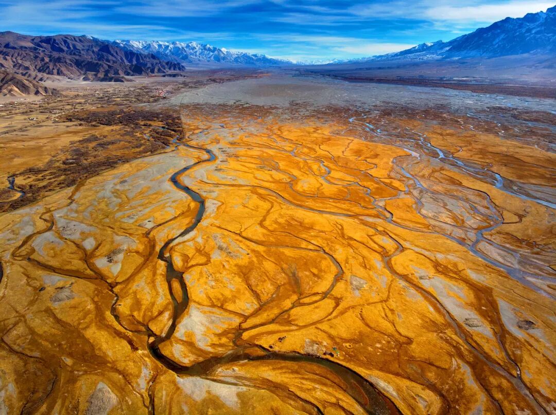 这里汇集了无数的山泉汇,才有了金黄的稻田,潺潺的溪流,连绵不断的雪山,广阔壮丽的荒漠戈壁,一片祥和的自然巨作。