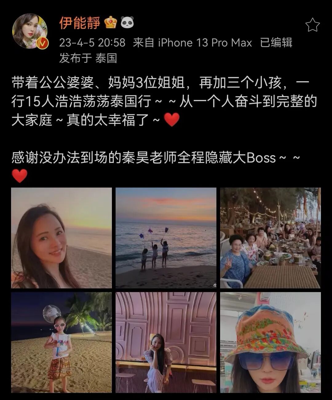 最近她组织一大家人出去旅游,公公婆婆,妈妈姐姐,还有一群小朋友。她享受着这种家庭的快乐。