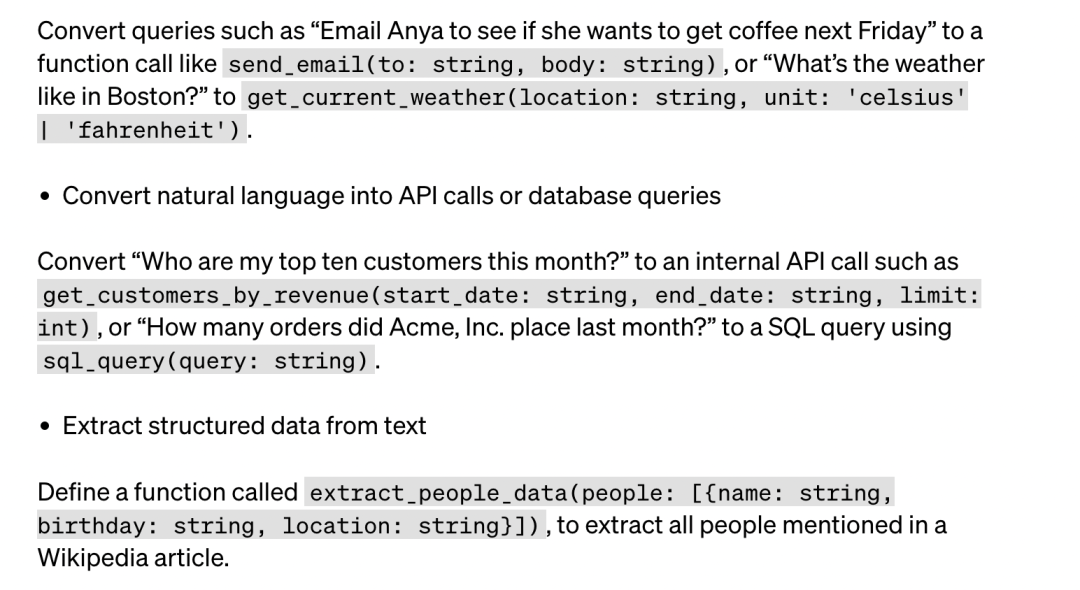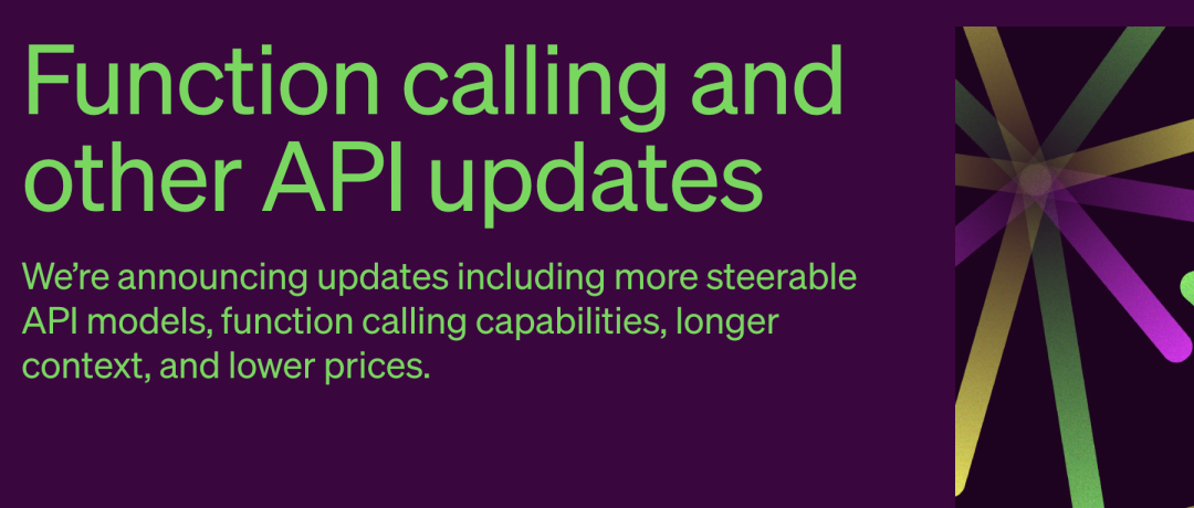 ChatGPT凌晨重磅更新,新增API函数调用功能,新模型可一次输入20页文本。智东西6月14日报道,就在今天凌晨,OpenAI毫无预告地发布了ChatGPT的重大更新。从官网信息梳理来看,OpenAI的更新主要包括以下六个方面的内容:1.在Chat Completions API新增函数调用(Function call)功能2.改进了gpt-4和gpt-3.5-turbo版本3.更新了gpt-3.5-turbo的16k上下文版本5.gpt-3.5-turbo的输入tokens成本减少了25%6.宣布了gpt-3.5-turbo-0301和 gpt-4-0314模型的弃用时间表可以看到,生成式AI领域的竞争越来越激烈,OpenAI不断加速迭代其AI大模型,同时降低其成本。OpenAI在博客文章中称,目前新增的函数调用功能允许开发人员向GPT描述编程函数,并让模型选择输出一个包含参数的JSON对象来调用这些函数。举一个简单的例子,开发者通过与聊天机器人“对话”,GPT随后能够知道何时要需要用外部工具来解决问题,即GPT可以将自然语言转换为数据库查询,并从文本中提取结构化数据,而不再需要开发者花费大量时间对其输入相关描述内容,同时,这也将进一步提升GPT的正确率。OpenAI此次还发布了gpt-4-0613和gpt-3.5-turbo-0613改进模型,两者均支持函数调用功能。![]()