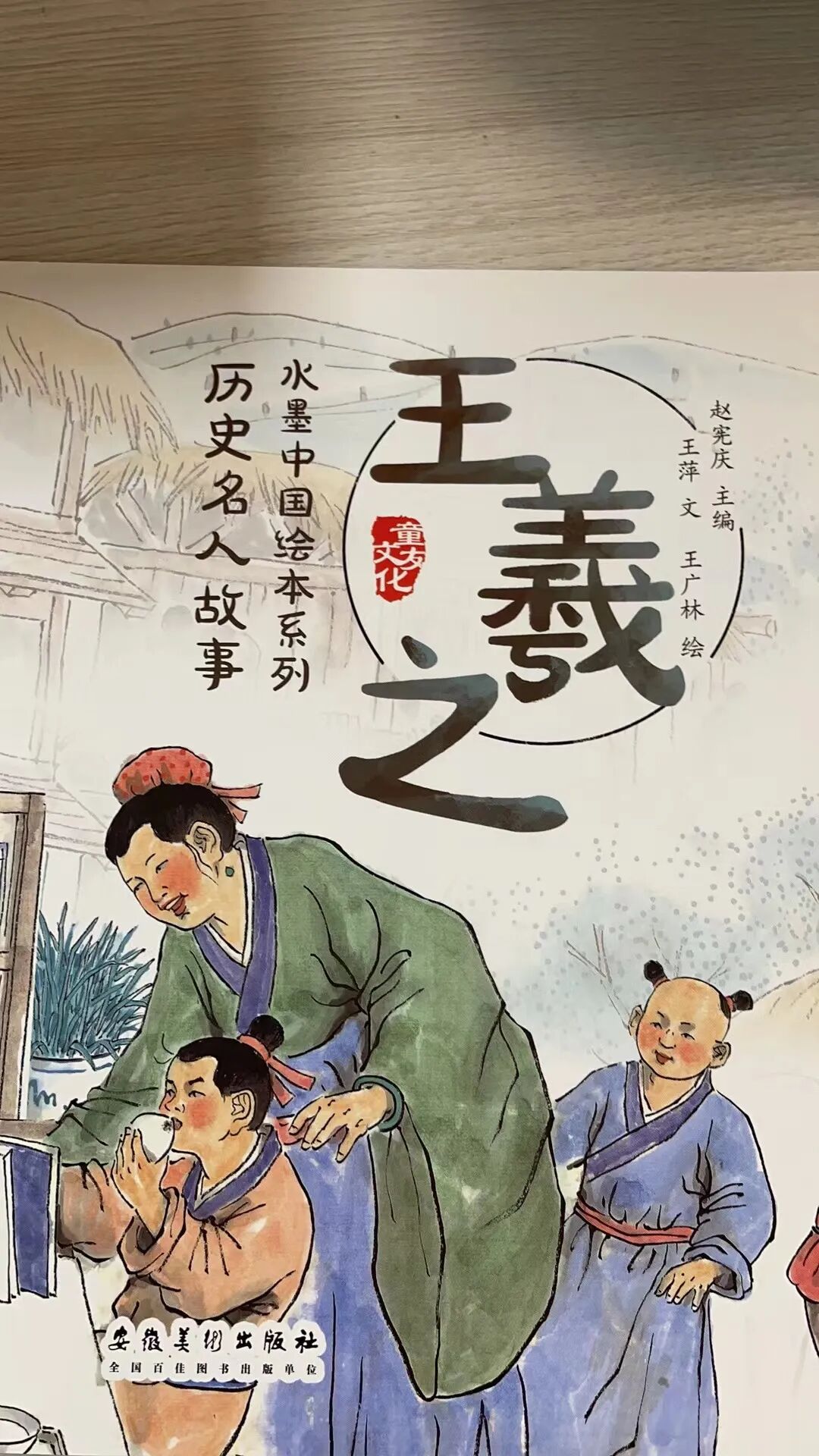 第一步,先看书法家王羲之小时候的绘本,让小朋友先对写字这件事情有一个初步的了解。