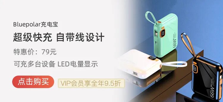 按一部手机充满需要三小时左右计算,使用一次需要15元左右,充两三次都可以买个新的,而且有时候去到偏僻一点的地方不一定借得到。10000mAh的充电宝容量够用,但又大又丑又重,带着十分不方便!这不就给大家找来了小巧便携、充电快的充电宝——【bluepolar充电宝🔋】。超级快充 10000mAh大容量