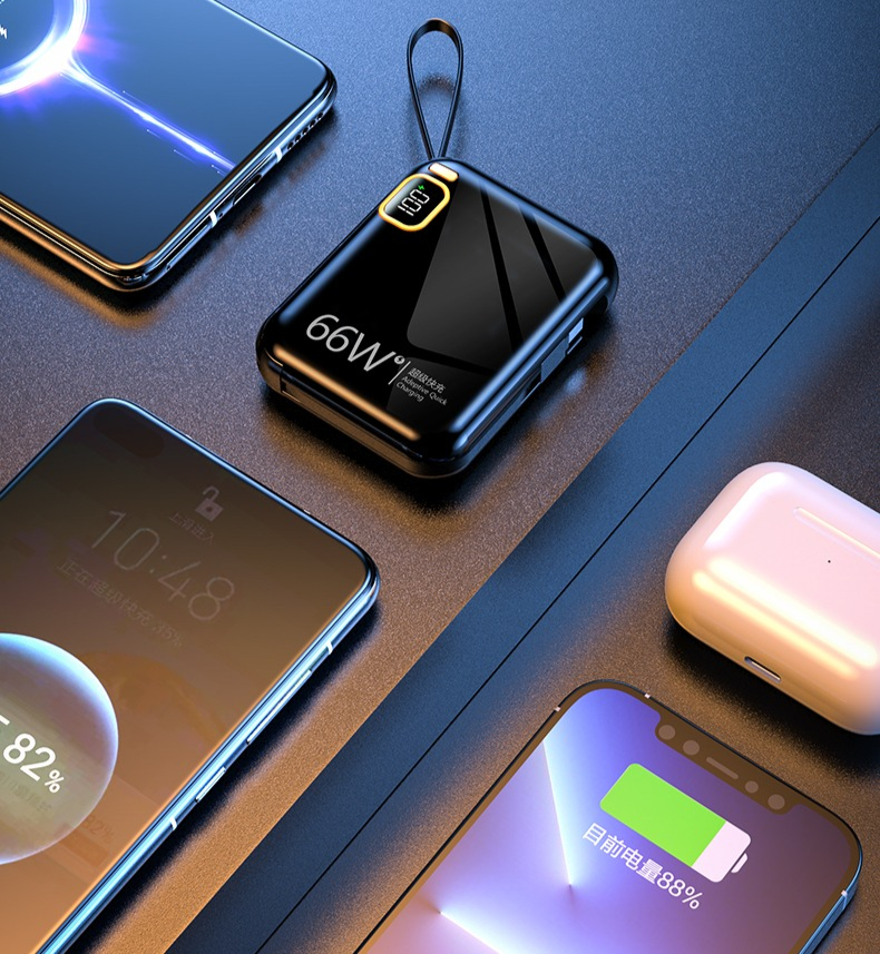 作为手机的灵魂伴侣,移动电源的容量是我们选择的首要标准,几千毫安的充电宝已经很难入咱们法眼了。但身材小巧的充电宝普遍容量都很小,可这款虽然小,但电容量足足10000mAh的大容量,足够给手机充电2-4次,完全满足出行充电需求。特意测试了下,充电宝满电状态下,能充满3部iphone14、2.5部华为手机(根据实际情况为准),出门再不用担心手机电量不足的问题。相比其他充电宝一格一格的电量显示,它采用LED数字显示屏!充电时,LED电量数显屏可以清楚的掌握剩余电量,相比LED灯提示更加一目了然,电量不需盲猜!超级快充 10000mAh大容量