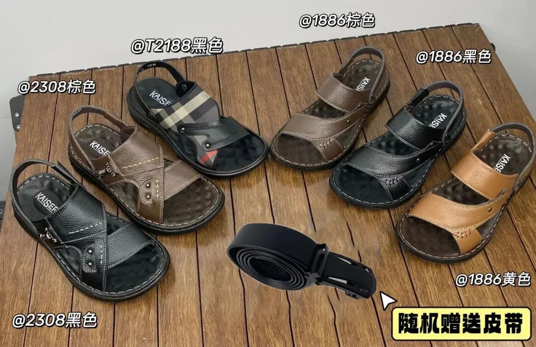 两款单鞋皮鞋,也是38-44的码数,是皮鞋码数,平时40的运动鞋,建议买小一个码数。收到这双鞋子你就知道什么是质感了,这次我们和凯撒KAISER品牌合作,厂家发货,1双2穿的头层牛皮的凉鞋到手价只要59元/双起,再送1条皮带!穿上这双鞋,无论是沙滩森林,还是工作通勤,都大方美观,让老爸尽情释放夏日清爽与活力。-点击下图立即购买-