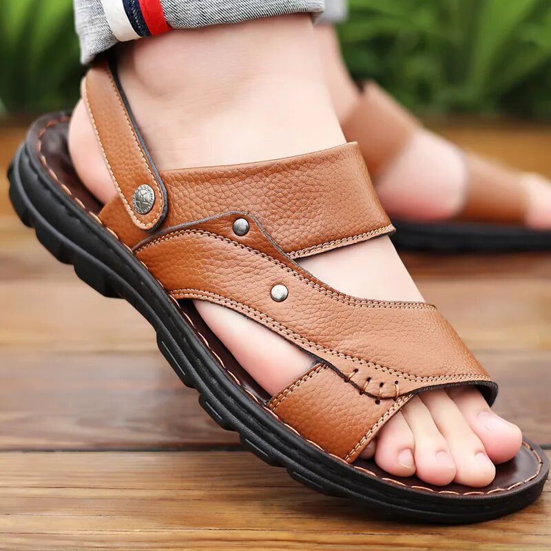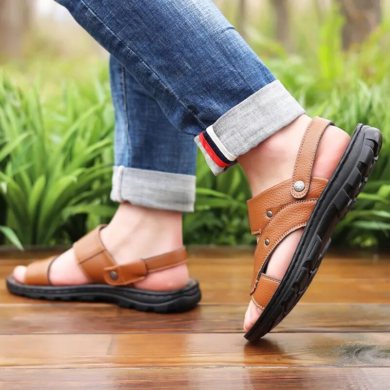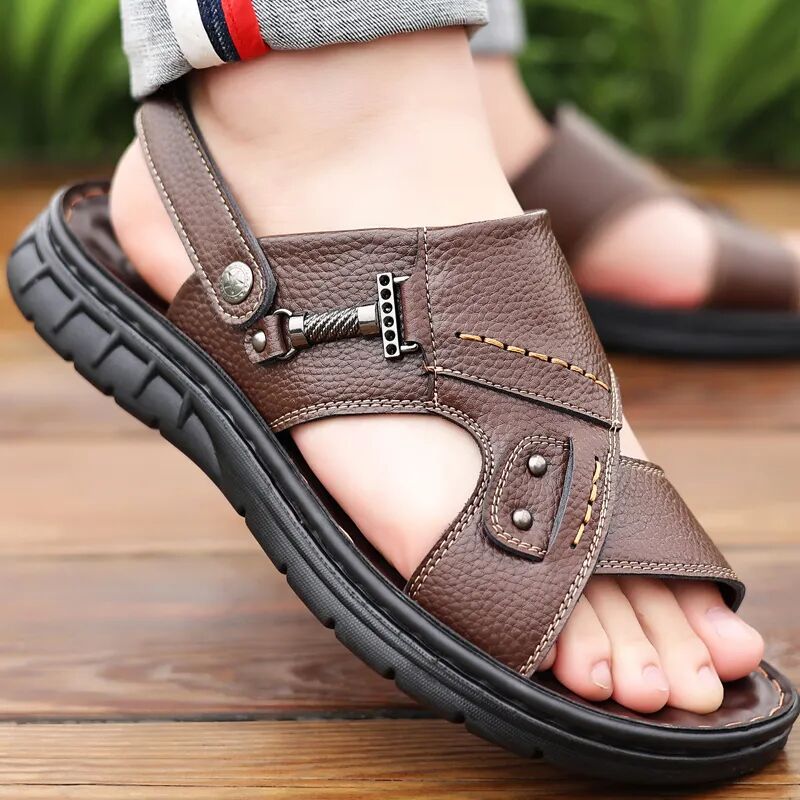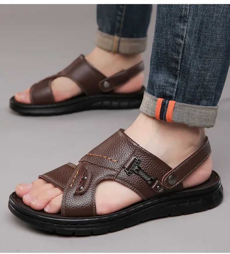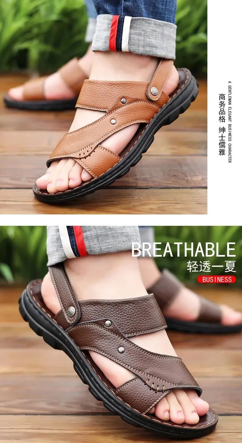 男人的气质真是个很玄的东西,它可以不被颜值所左右,也可以不被学识内涵控制。但只要你周身装扮干净清爽,就会带来一种通透清新的气质。选凉鞋也是一样,重要的就是——简单、干净,能做好这两点,就可以赢下一大半了。某网红Nick大叔,用普通凉鞋,搭配个撞色的袜子,时尚姿态无人能敌。这种透气又轻便的运动休闲类凉鞋,搭上棉麻上衣、衬衫、白T等,清新又时尚,还有一点文艺气质呢。简洁的造型永远不会犯大错,搭配宽松舒服的休闲裤,卷起一点小裤脚,随性慵懒,自带时髦感。总之,今天选的都是基本款,整体款式也时尚大方,经典不过时。如果怕在办公室太过不羁随性,那你可以选择黑色凉鞋,整体搭配会很和谐,不会出错。加上凉鞋呢,是凉拖两穿的设计,久坐的时候换成拖鞋穿法,让脚也松快松快。这次的凉鞋,皆为手工缝制,不留虚缝,一双穿三季依旧如新。看这缝线,紧致而平整,透着不输大品牌的细节感,上脚后不经意间便演绎出绅士范。如果老爸工作不用那么拘束,那一双棕色凉鞋会把整套服装点亮,整个人都会精神起来。买来给父亲,顺便可以给老公、男朋友多带一双穿,都是非常不错的🔅。皮鞋有常规款和镂空款可选,非常人性化,正式场合可以选择常规款,休闲的时候可以穿镂空。-点击下图立即购买-