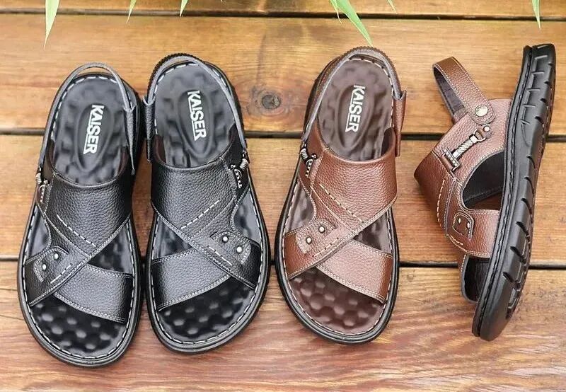 今天给大家推荐的鞋,来自于意大利品牌KAISER。并在流行与风格中不断创新,塑造出了凯撒KAISER男女鞋经久不衰的品牌形象。送老公,送爸爸,送爷爷,柔软质感满满,大品牌值得信赖!对比某些品牌, 动辄几百上千元的价格,凯撒KAISER特别的亲民,凉鞋低至59元起一双,还送一根皮带!(凉鞋款送)1、鞋面采用大厂定制的整张头层牛皮,剪裁而成,透气防臭不磨脚;2、弹软聚氨酯橡胶大底,防滑耐磨,柔软轻盈,雨天和户外涉水都能穿;精选聚氨酯乳胶大底,具有可以拧成麻花的柔韧性,回弹性能超好,缓震能力也非常强。不会像劣质塑胶那样板脚,长久穿无形中保护着我们的脚踝和膝盖。加上头层牛皮鞋面,从上到下都保证了整双鞋子的透气性。不打滑不臭脚,对男士真的十二分友好,是一款汗脚朋友也可以放心穿的凉鞋。柔软舒服的同时,又因本身的质感肌理,而使男人的衣品蹭蹭上升。平时会穿着需要比较正式的爸爸,可以给选择单鞋皮鞋款,像这款镂空的,既凉快又不缺乏商务感。-点击下图立即购买-