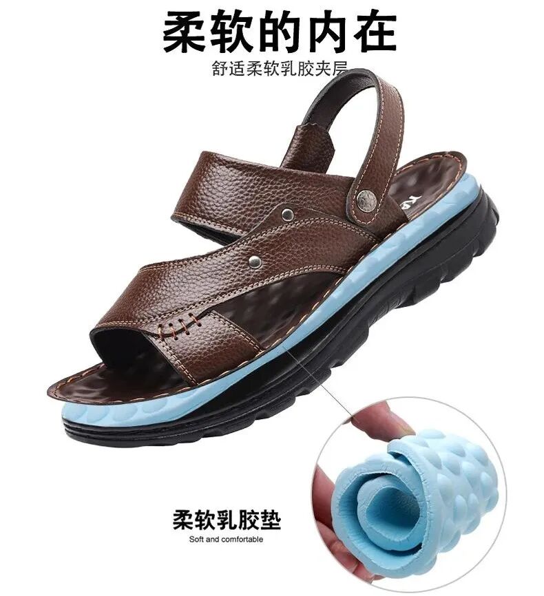 鞋底内除了含有聚氨酯,还特别添加了一层厚厚的天然乳胶夹层,就是枕头常用的那种天然乳胶。细数一下天然乳胶的优点,那真是一只手指数不过来,超轻、柔软、高弹缓震!别看单鞋款那么正式似的,实际穿起来不板脚,踩进去也是很舒服,会很符合自己的脚型和走路习惯。乳胶鞋垫回弹性能好,穿着它走路就像踩在乳胶铺的路面上,舒服无感,同时还能缓解脚步行走时的压力,保护脚踝。这款牛皮凉鞋,就收集上万组中国男人脚型数据,打版设计而成,穿过的男同事都大赞:好合脚!鞋型的设计上加高和加宽了前脚掌处部分,扩大了鞋内空间,减少了对双脚的束缚感,穿着不挤脚。鞋底不是平面的,在脚尖部分有一个自然的隆起,符合亚洲男性的脚底曲线,即使是扁平足穿,踩上去也非常贴脚,越走越舒服。从选材到制作,如对待宝石般精细认真,每一笔弧度的调整,都是更适合亚洲人脚型的选择,穿上去贴合大多数男士的脚型。无论是脚背高还是脚掌宽,都可以轻松穿入、穿得舒服。单鞋也是一脚蹬设计,不用系鞋带,爸爸穿起来很方便。夏天的时候也有很多人喜欢去海边或者露营,这时候就会考验到鞋子的安全性。特别是给家里的长辈选鞋,不仅好穿舒服,也一定是很安心的!今天选的鞋子,鞋底有减震方格沟槽,防滑耐磨,走起路来平稳不累脚。特别的沟槽型防滑纹理和钉型防滑纹理,提供双重抓地力。3cm的加厚增高橡胶底,上脚显高,增加男子的阳刚气质,给足了安心感,南方儒雅男子也能有北方的豪放气概。细节处也非常用心,鞋身采用耐磨的马克线手工缝制,这样的凉鞋穿着不会开胶,雨天也不怕。一体成型工艺,造型比普通的凉鞋要多一些细节,看起来不古板。家里的长辈都能穿,给自己老公带一双都是非常棒的!价格还这么美丽~ 这个后跟带也要好好夸一下,自由调整一鞋两穿,上班、居家随心驾驭,穿起来也很方便简单,套一下就可以了。-点击下图立即购买-