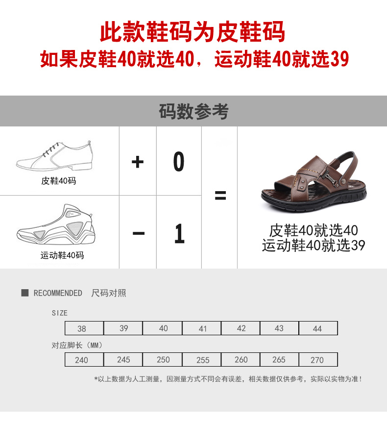 凯撒KAISER在每双鞋的设计细节上,都下足了功夫。经过道道严格把控,这才有了无数消费者口中“皮质软”、“舒服”、“百搭”、“轻便”、“做工不输品牌”的鞋子。而且凯撒KAISER是少见的埋头苦干、非常实诚的品质潮鞋品牌,遵循独立设计、手工制鞋的匠心,在业内有口皆碑。线下店铺也随处可见,可靠的质量,是靠消费者口碑做出来的国货品牌。凉鞋要合脚才舒服,这款凉鞋是标准中国码,大家选购的时候可以和平常穿的皮鞋尺码一致。39码的凉鞋等于39码的皮鞋,或者40码的运动鞋,大家可以参考这个尺码表下单。![]()