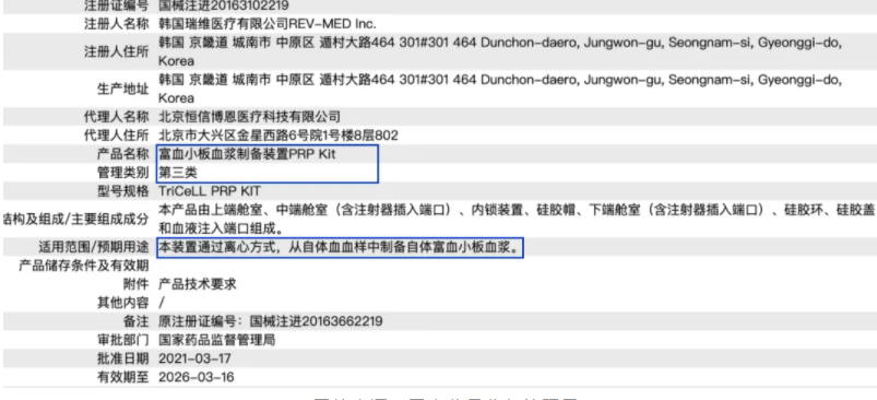 虽然能在药监局查到批文,但是批准的只是这个“血小板离心装置”。