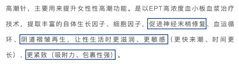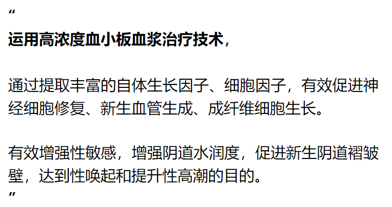 但仔细分析一下,应该就是需要先抽血,通过技术(把血液放进离心装置)对抽出来的血液施加“魔法”(离心出来的血小板),然后注入女性体内--私处敏感带。