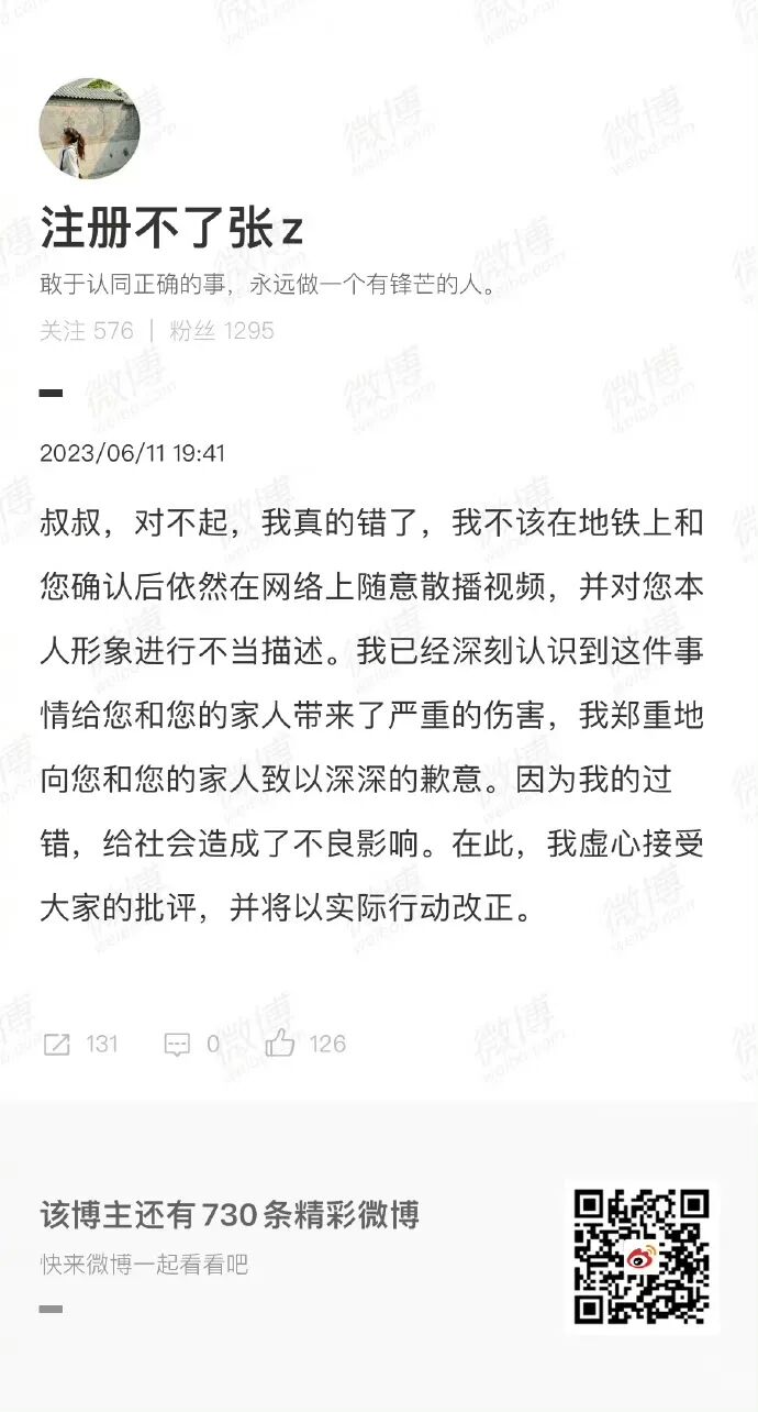 当然,她最大的错,是把大叔的视频发布到网络上。如果大叔偷拍被实锤,真是猥琐男,公布大叔的视频就是理所当然了,当然,常规的做法是在发布视频之前将大叔面部马赛克,不过就算不打马赛克,也不会出大的事,因为选择站出来曝光的目的就是要让公众知道其身份。