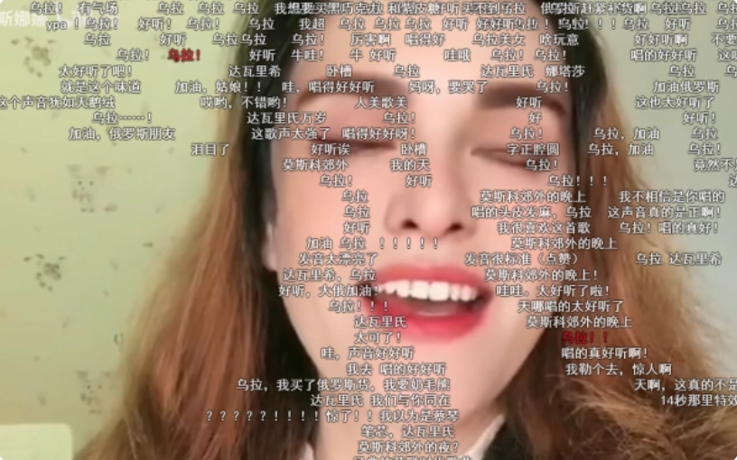 视频内容同样毫无营养,起手就是 “ 亲爱的中国兄弟姐妹们,你们好,我是俄罗斯娜娜 ” ,而后用伪装出来的 “ 俄式 ” 口音唱中文歌,有时候唱都不唱,就对嘴型。