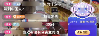 另一个视频中,她又告诉大家俄罗斯没有彩礼,还教大家如何娶俄罗斯姑娘:在她店里提上两瓶伏特加跟两瓶蜂蜜,就能搞定俄罗斯老丈人,老丈人一高兴,说不定车和房都送你。