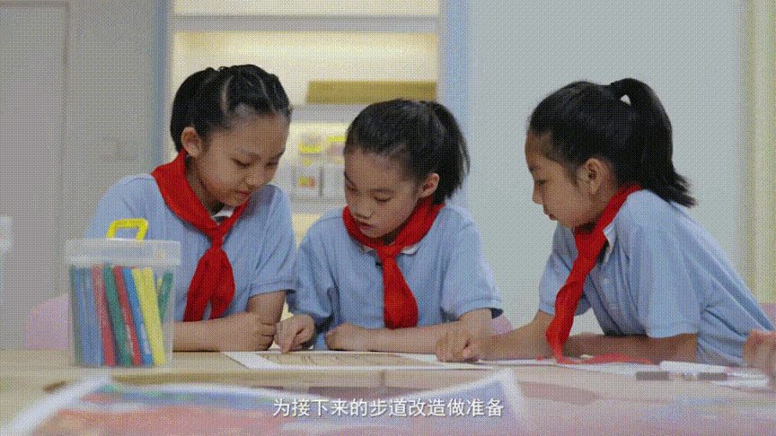 少先队员:经过一次又一次的头脑风暴、一轮又一轮的修改完善,历时10天,最关键的“老街变新颜”涂鸦设计图终于绘制完成了!