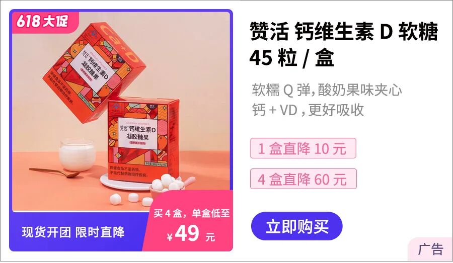 好不容易等到 618 大促,现在买 4 盒立省 60,还能帮一家老小实现快乐补钙,真心很划算!