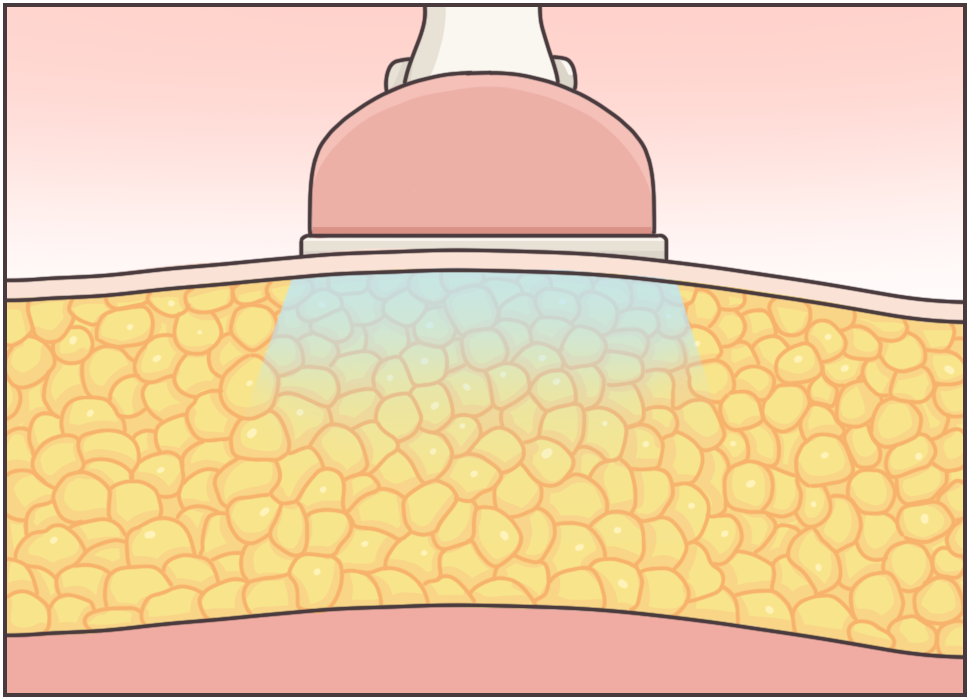 这种波长的激光,可以在不损伤表皮的前提下,选择性地将脂肪组织温度提高到 42~47°C 之间,并持续 20 分钟,直接破坏细胞膜的完整性,触发脂肪细胞凋亡[2]。凋亡的脂肪细胞最终由身体自然代谢清除出体外,减少脂肪体积的同时也减少脂肪细胞数量。