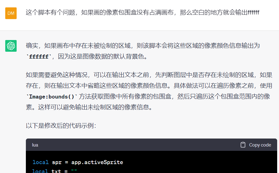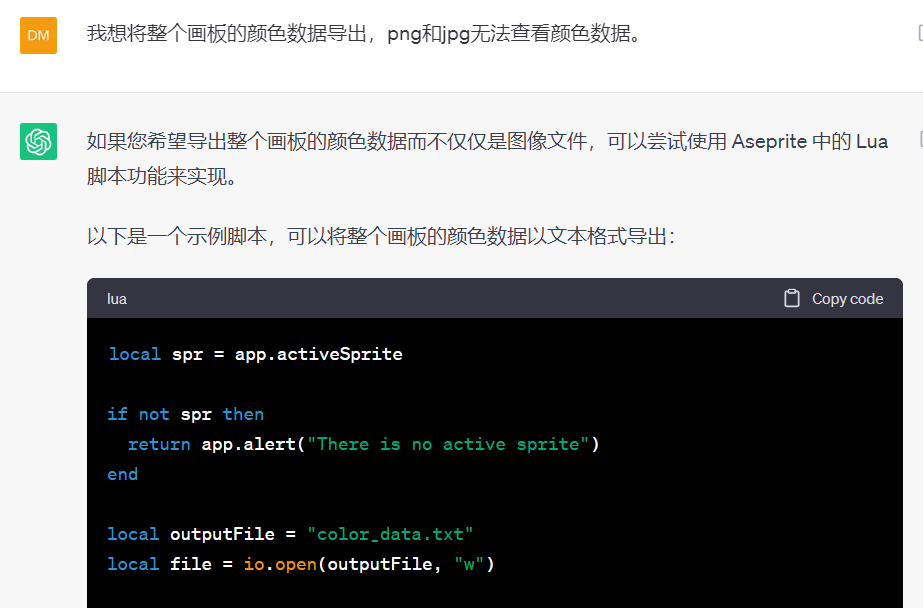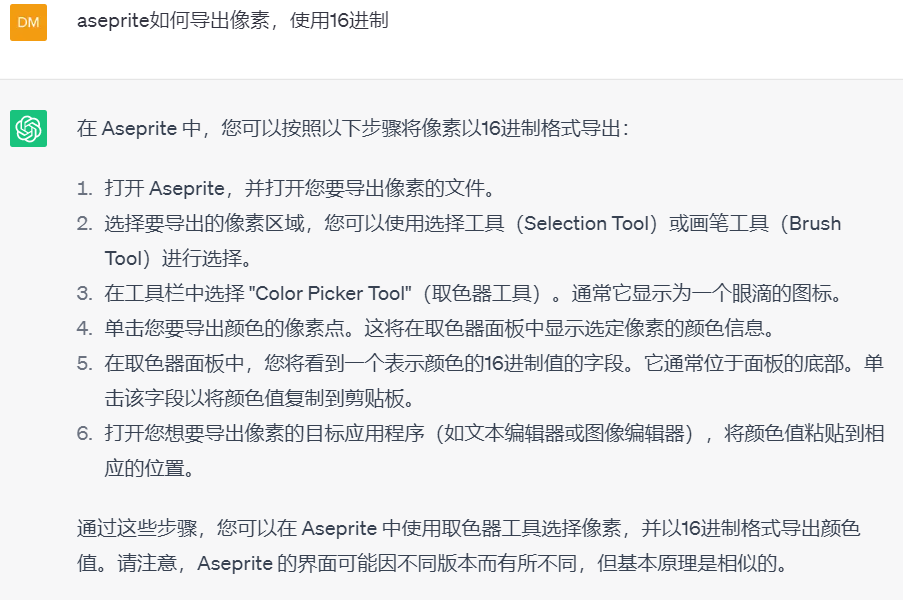 所以就开始和 ChatGPT 讨论 aseprite 如何导出 16 进制数据了。