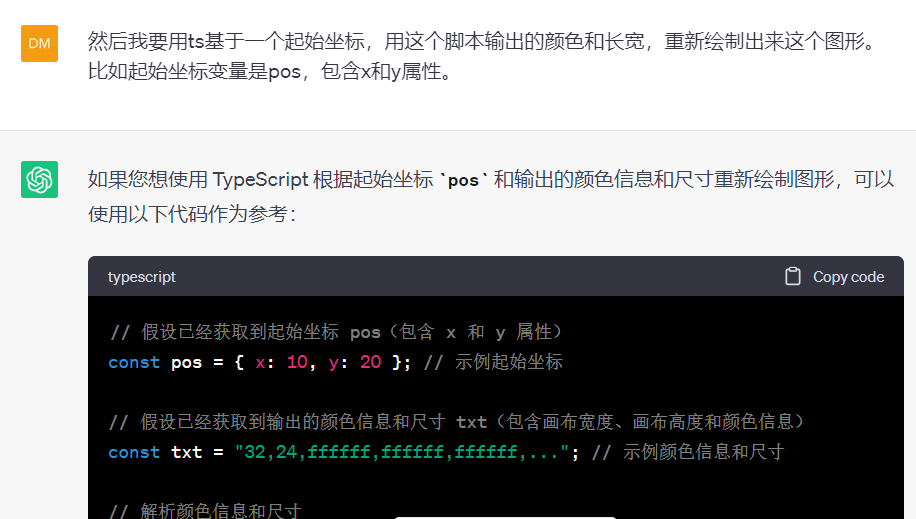 然后就让他给一个可以用 typescript 还原的代码。复制到项目里适配一下就可以了。