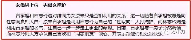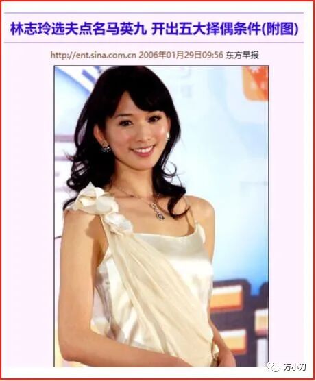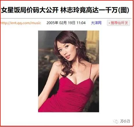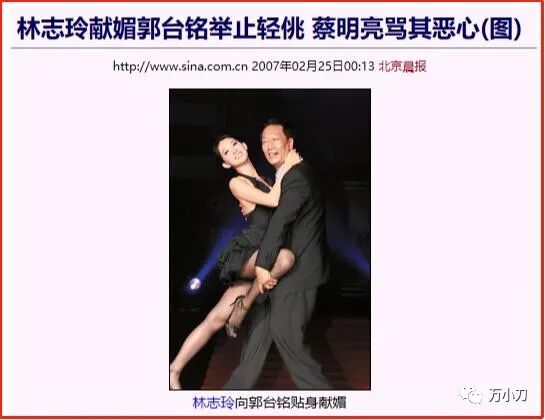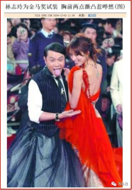 但是女观众们不知道,争议越极端,话题越持久,两岸三地以一种近乎失控的速度,刮起了一股“志玲姐姐”袭来的龙卷风。2005年,31岁的林志玲,身价再次三级跳,连饭局价码都飙到了一千万。 她的绯闻新欢,也换成了小她3岁的喜来登酒店老板蔡辰洋的二公子、台湾喜来登饭店总经理蔡伯翰,爆料称两人已秘密交往5个多月。 3月,《壹周刊》刊登了一组林志玲与言承旭的亲密自拍照,瞬间引发轩然大波,舆论一阵喧哗,媒体争相报道。令人讶异的是,这组亲密照外流,源自林志玲修手机——被人窃取,然后卖给媒体的。更讶异的是,照片刊出第二天,圈中人曝言承旭其实是“同志”,言、林两人传了好几年的绯闻,不过是“假面情侣”之间的相互利用。面对记者求证,林志玲没有对言承旭的“同性取向传闻”加以澄清,反而坦白自己身边不乏“同志”朋友。此番言论让言承旭非常不爽,甚至认为事件充斥着阴谋论,外流的照片像是精心编排的“造势火料”。连媒体也认为林志玲觉得自己“台湾第一名模”的称号,已经稳稳当当,不用再利用言承旭的名气,于是过河拆桥,“出卖”言承旭是“同志”。事件真真假假,令人浮想联翩,热议不断,如果那时有热搜,一定会持续好几个月。同一时期,已与吴佩慈交往近半年的苏点忠,也向某周刊大爆与林志玲的旧情。称两人交往近4年,已见过双方家长,却在林志玲突然走红后,“莫名其妙”被甩了。 这则曝料,让林志玲同时背负了“过河拆桥”和“忘恩负义”的标签,甚至被媒体批没有代表秀,“不配做名模”。 是非不断,负面缠身后,林志玲在一次活动主持中,由陶晶莹引路,主动碰面活动颁奖嘉宾萧蔷,与她热情拥抱握手言欢,上演了一场“相逢一笑泯恩仇”的好戏。“二美相争”落下帷幕,两人全面和解的新闻,被传得沸沸扬扬。人红是非多,是非多了人更红。2005年一开年,短短3个月,31岁的“志玲姐姐”便真的很红很红了。她成为不靠拍电影和出唱片而走红的“现象级女星”,更是绯闻最多、最有争议的超级女星。就在林志玲与各位旧爱的恋情都无疾而终时,林妈妈作媒,有意撮合她与青年才俊施胜霖。施胜霖是李登辉的翻译,不但精通中、英文和日文,还是音乐才子,出身名门,家族是台南首富。林妈妈高调向媒体表达对施胜霖的喜爱之情,施胜霖受访时,也大方承认欣赏林志玲。“相亲事件”通过新闻媒体的报道渲染,再次提升了林志玲的知名度。只可惜,两人的相亲之路,因为聚少离多,颇费周折。2005年7月,林志玲在大连拍摄广告片时,意外坠马并被马蹄踩伤,造成胸部6根肋骨骨折。消息一出,疯传网络:活色生香的34C胸没了?这实在是太引人关注了!媒体逮着这么个大新闻,自是在医院门外“长枪短炮”地候着,果不其然地拍下了她近期绯闻男友“之一”邱士楷的身影。邱士楷是台湾和成企业集团的太子爷,祖辈靠浴室用品起家,旗下产品因在1998年邀请演唱《马桶》的刘德华做形象代言人,名声大噪。林志玲在大连住院期间,来探病的不止邱士楷,昔日情人言承旭,也被曝光在媒体的八卦阵营里。还有一位远在加拿大、叫做陈勇全的骨科医生,也为她进行远程治疗。后来,媒体曝光两人相识15年,曾是初恋情人。新欢旧爱短兵相接,PK战场上热闹非凡,不久后,传来了林志玲与邱士楷即将订婚的消息。一边是与邱士楷的订婚消息,占据各大媒体,一边是她在采访中高调示爱周杰伦,主动制造“绯闻对象”。并在不久后,夜会三位男性友人,其中有她的绯闻对象:新光三越百货少东家吴昕阳,以及两位已婚富豪男士。如此高频度的曝光,导致“坠马事件”后,林志玲的复出之路毫无障碍。2005年底,林志玲担任第40届台湾电视金钟奖颁奖典礼的主持人,在晚会上献出了“处女唱”,热舞露臀,引发一阵骚动。2006年11月,32岁的林志玲主持亚太影展时,与29岁的言承旭再次同台。舞台上,林志玲舞姿热辣撩人,连换7套服装,并巧妙地与言承旭搭配成“情侣装”。 这一年,主持界的林志玲风采无限,以压倒性的高票,打败了同年主持金马奖的“美女主播”侯佩岑。而她与言承旭的关系,越来越欲说还休,雾里看花。倒是与另一超级富豪的渊缘,日渐明朗。2006年底,在郭富城主演的影片《父子》的庆功宴上,以一身激凸露背装现身的林志玲,结识了台湾首富、正与刘嘉玲闹绯闻的郭台铭。2007年2月,在鸿海集团的尾牙晚会上,林志玲成为郭老板的新舞伴,两人贴身热舞,画面非常有爱,恋情呼之欲出。台上,33岁的林志玲不停献媚,57岁的郭台铭举止轻佻,结果惹来一阵“恶心”骂名。骂归骂,林志玲成功上位,接拍了电影处女作、吴宇森执导的《赤壁》,饰演“小乔”一角。2008年,《赤壁》热映,林志玲以一个“花瓶”的职业素养,成功贡献了经典台词“萌萌,站起来”,让观众为之异常欢心。34岁的林志玲,凭借此片,获得包括“金像奖最佳新演员”在内的多项提名,她的演技虽有争议,但商业价值和大众认知度大大提升。自此,林志玲开启了电影生涯,出演的角色多是偏向独立、知性的女性角色。当然,激情戏是重头。她在《决战刹马镇》中,与孙红雷热吻。在《幸福额度》中,与廖凡大尺度滚床单。在《101次求婚》中,对黄渤献上湿吻……她在2010年拍摄日剧《月之恋人》时,还被传与男神木村拓哉假戏真做,惹得从不探班的“木村嫂”工藤静香,亲自到片场“宣示主权”。这一年,林志玲36岁,她