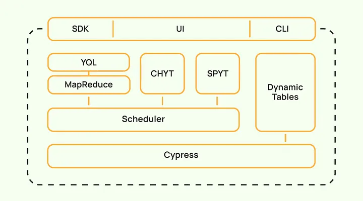 我们设计的系统既灵活又可扩展。目前,它的功能并不局限于经典的 MapReduce 技术。在本节中,我将描述 YTsaurus 开源版本提供的主要技术能力,从底层存储到高级计算原语。