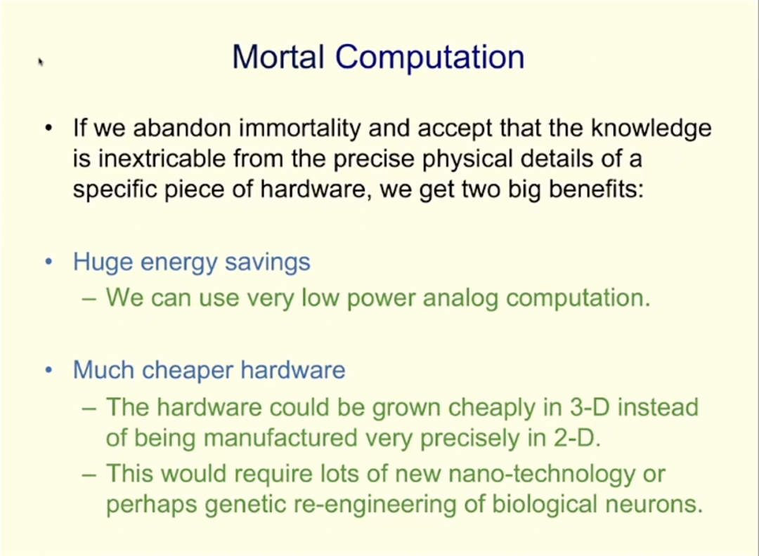 如果我们真的放弃了软硬件的分离,我们就会得到我称之为非不朽计算的东西。