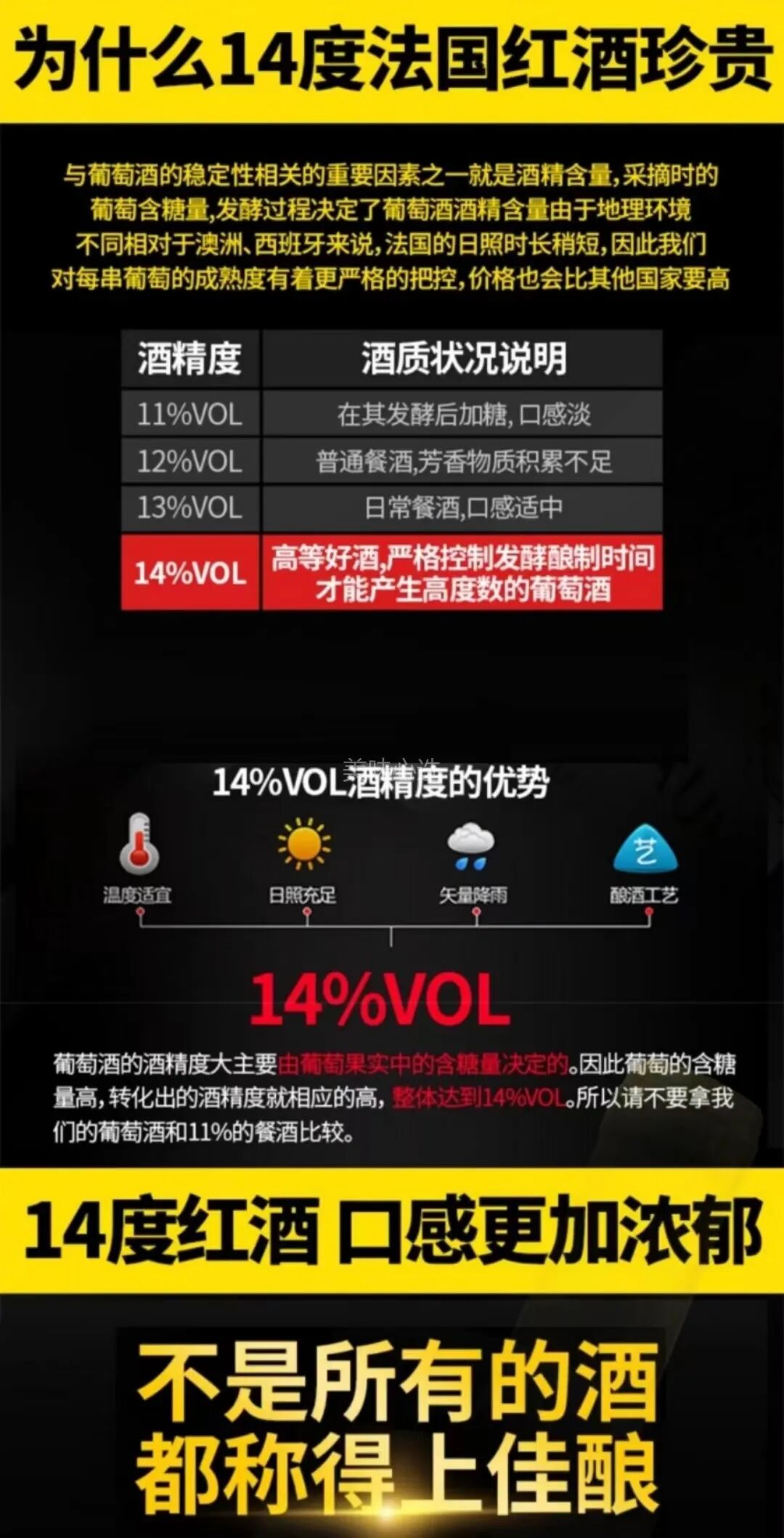 对于很多品酒师而言,14%vol的葡萄酒,味道上会更加的浓郁,甜度也更好,口感更符合懂酒的人口味。