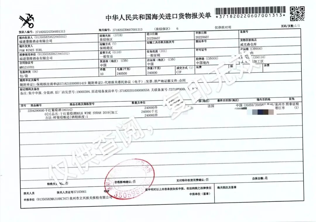 经18个月橡木桶陈酿,口感柔顺,果香味浓郁,略带一丝巧克力,香草的味道!!