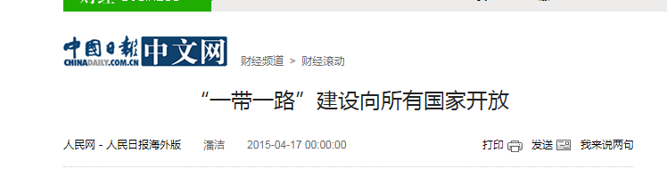 于是人民日报海外版在2015年的时候,就播发了我们的郑重宣告:一带一路建设向所有国家开放。