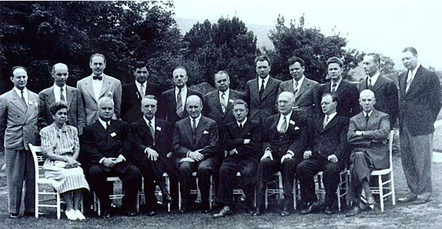 说到这里,又有人要说了:美国不也曾是全世界最大的工业国吗?比如说1945年,它的钢铁产量,可是占全世界的80%啊!二战时造的船,更是不得了,光航空母舰就造了100多艘!它也完全可以学英国,来扮演世界市场管理者的角色啊!到这里,又可以进入第四层了:为啥美国和英国都是盎撒人的国家,美国却没能学英国,直到现在,也没能成为世界市场管理者?一个人叫哈里·迪克特·怀特,我们下面就称他“怀特”好了。我们都知道:1944年7月1日,从44个国家来的730名代表,一起聚集在美国新罕布什尔州,一个叫布雷顿森林的小镇里,商量战后国际货币怎么安排。最后大家商定:美元和黄金挂钩,一盎司黄金等于35美元,其它国家货币呢?则与美元挂钩,有固定汇率,但可调整。![]()
