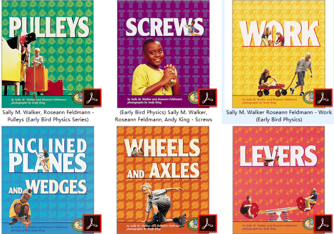 然妈今天给大家分享这套物理启蒙书《Early Bird Physics Series》,介绍了六种简单机械,螺钉、轮轴、杠杆、滑轮、楔子,斜面,重力,摩擦力等难懂的物理概念,让这些知识变得易于理解,为以后学习物理打下基础,通过简单的实验配合全彩页面,让孩子了解物理。