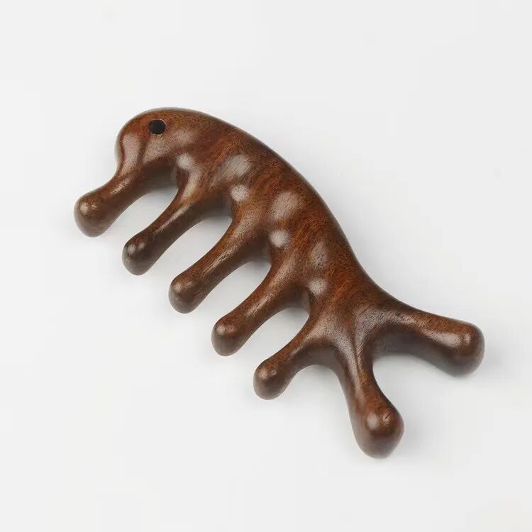 给大家好好介绍一下这个宝藏好物,我走到哪带到哪的——它的特点是,集拨筋按摩工具和梳子于一体,通过它可以轻松享受,拨筋、按摩、梳理等多重体验。我的这款经络按摩梳有5根梳齿,梳齿较粗,齿距较大,齿尖圆润。梳头的时候就像用指腹按摩头皮,让头部穴位得到舒缓~这个梳子是我一个好姐妹知道我偏头疼,特意推荐给我的拿到的时候我还很好奇,这个梳子圆头圆脑的真的能梳头嘛?但是用起来真的很舒服!古人早就将梳头,当作行而有效的养生方式。唐朝名医孙思邈,他的养生方法有一条就是——发常梳。每天早晨,他都会用“五指梳”的方法梳头百次,长此以往,他不仅发质坚固,身体也愈加强健!用经络按摩梳梳头,其实就相当于,中医中的“五指梳头法”。这款经络梳,以天然珍贵的金丝檀整木雕刻,有淡淡的檀木香。闻起来会比较低调、安神,用的时候从触觉到嗅觉都是享受!梳齿圆润饱满,贴合手掌设计,梳头的时候,拿握起来不费劲。檀木梳子会一起按摩头皮,起到促进头皮血液循环的作用。梳齿的弧度贴合头部,没有其他木梳,和头发“打架”的对抗感;反而像一双经过岁月沉淀的手,细腻地穿过发丝,梳掉头发里的每一个小纠结,只有温润的触感留在发间。梳理头部的时候力度刚刚好,不会伤头皮,也不会扯头发,梳着很得劲~而且会越用越亮(还有点成就感),梳多了感觉头发也油得没那么快!我们的头部有头维、百会等穴,经常梳理头部各穴有健脑的功效如果你时不时头昏脑涨或者失眠,赶快来试试!精选好料,古方养生,让身心更放松!也可以送给周围亲近的人,献上自己的一片心意!让幸福从头开始~![]()