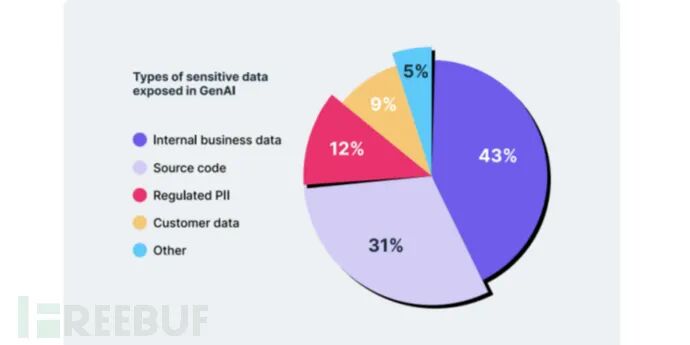 更重要的是,被粘贴进GenAI工具的敏感信息的主要类别包括:内部业务数据占43%,源代码占31%,以及个人身份信息(即PII)占12%。这其中,源代码和内部业务数据被利用的风险是最高的。